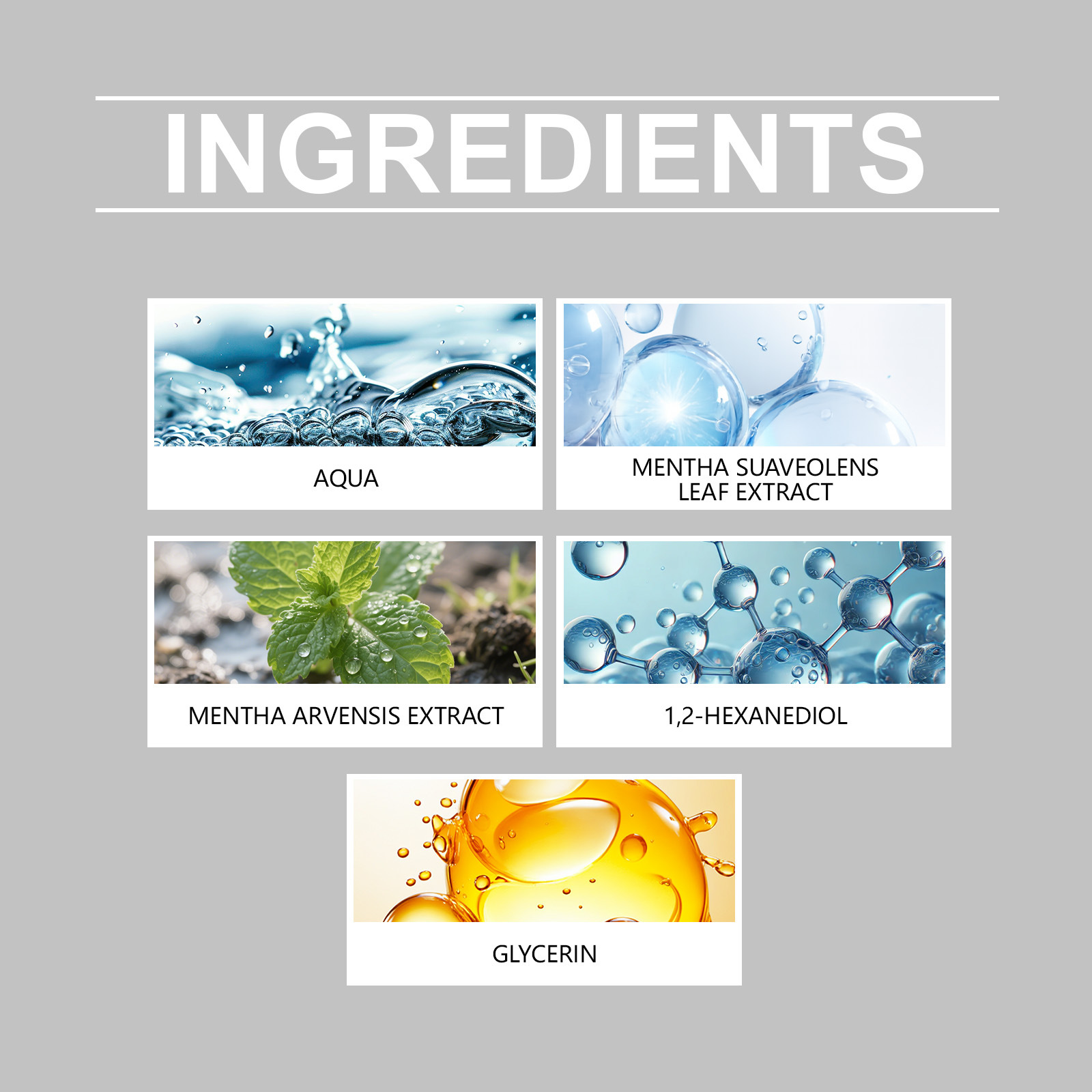 Ingredients: water glycerin mint leaf extract 1,2- hexanediol mint extract.